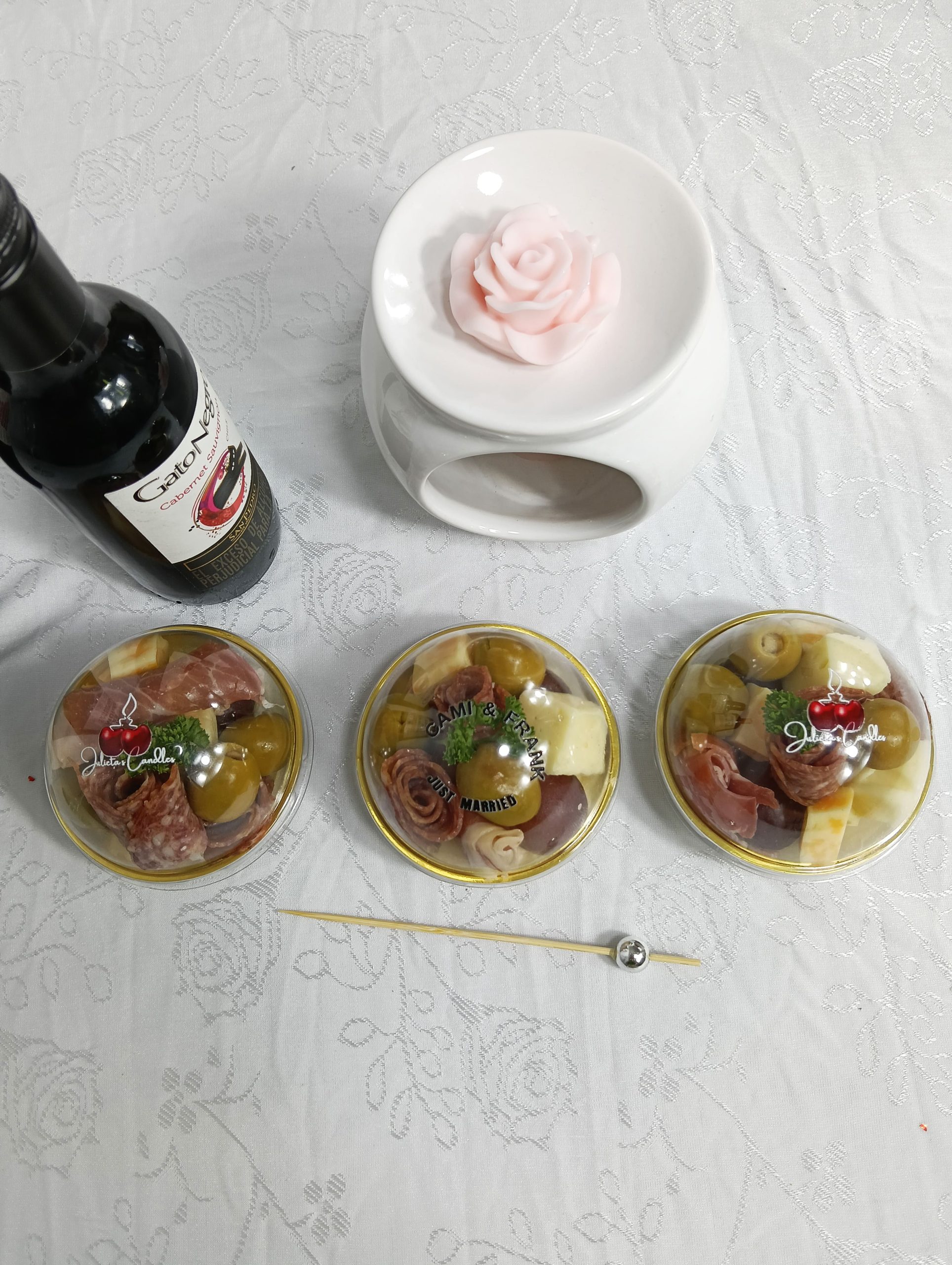 Un detalle pequeño con gran impacto: aceitunas, quesos madurados, salami, chorizo tipo vela y uvas frescas, presentados con elegancia y personalizados con el logo de tu empresa o evento.