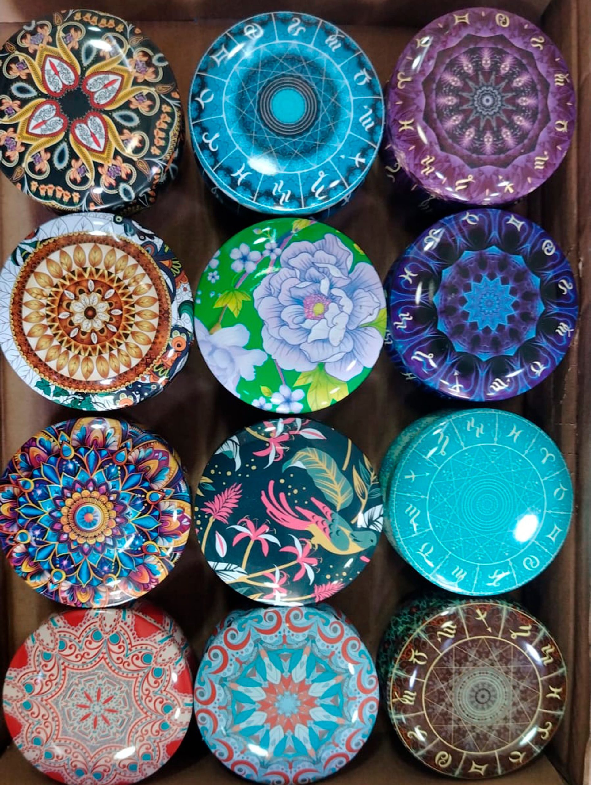 Vela de 70 g en recipiente de mandala, en cera 100% natural y aroma relajante. Ideal para decorar, meditar o disfrutar de un ambiente armonioso.